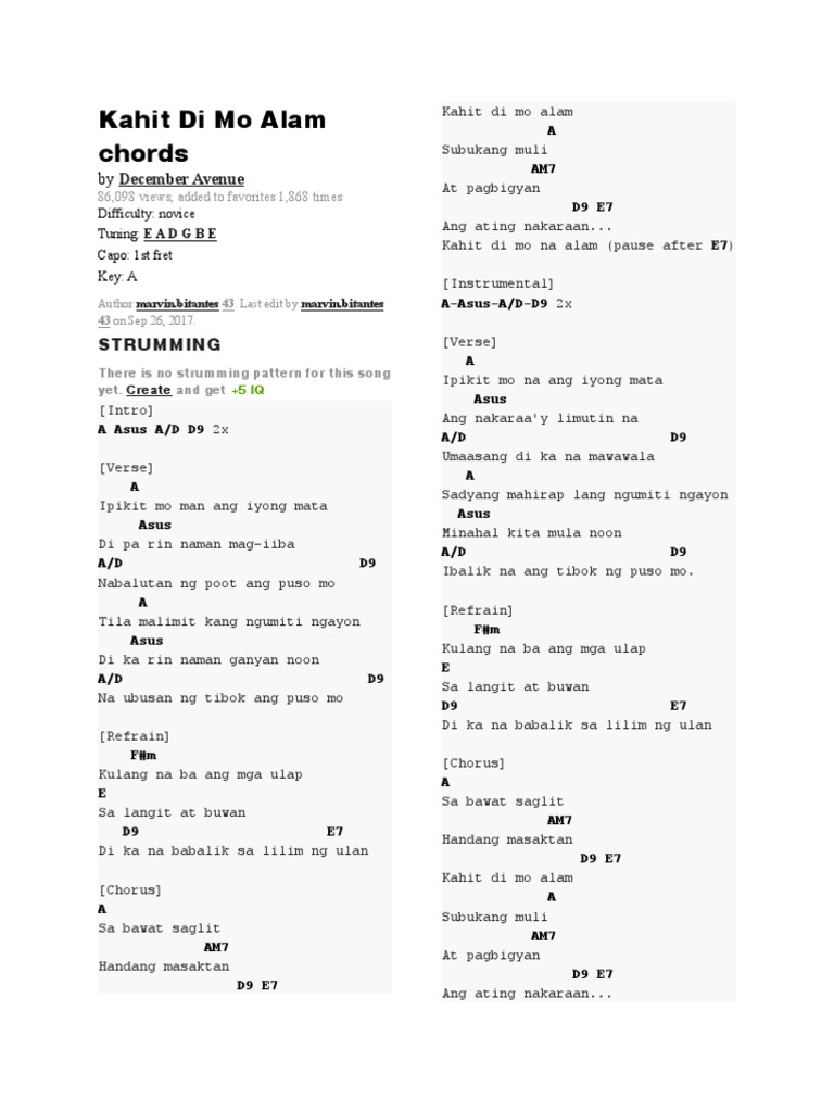 Di Mo Lang Alam Chords by Indio I. Ikaw ang tanging buhay ko. Kahit di mo na alam chords kahit di mo na alam december avenue chords kahit di mo na alam lyrics and chords Download button is at the bottom.