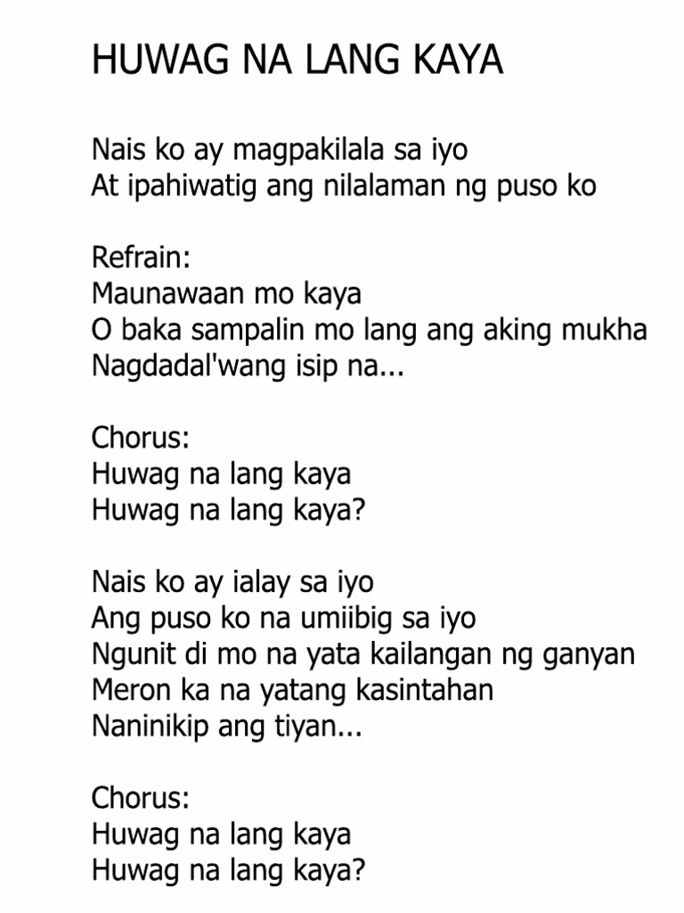 Just listen to the song to know the timing for the strumming and tapping. Play Huwag Na Lang Kaya Tabs using simple video lessons. 27203 views added to favorites 149 times.