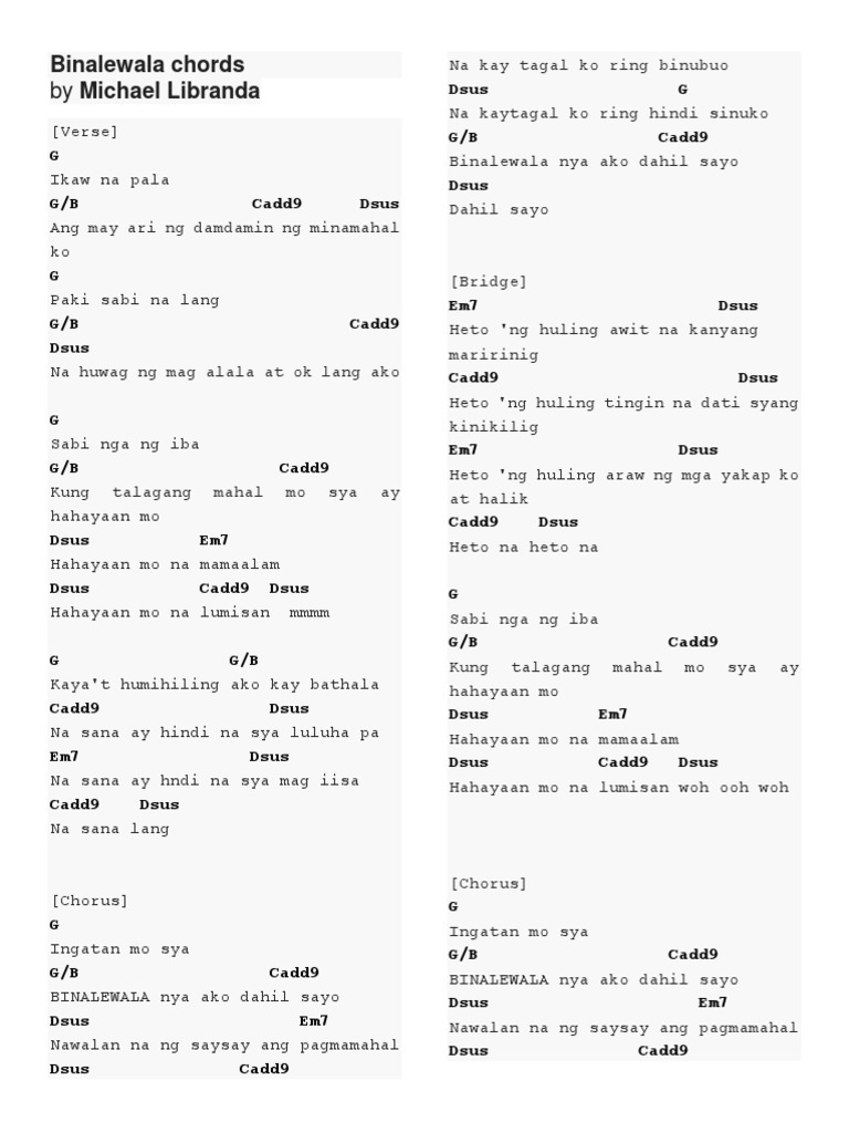 Michael Dutchi Libranda Binalewala Chords For Guitar And Piano Chordzone Org