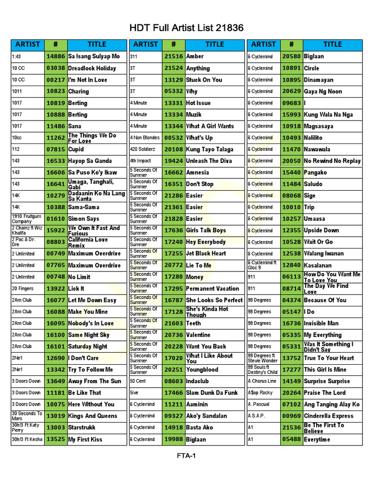Hdt Full Artist List 21836 P Hyundai Karaoke Artist Songlist Entertainment General