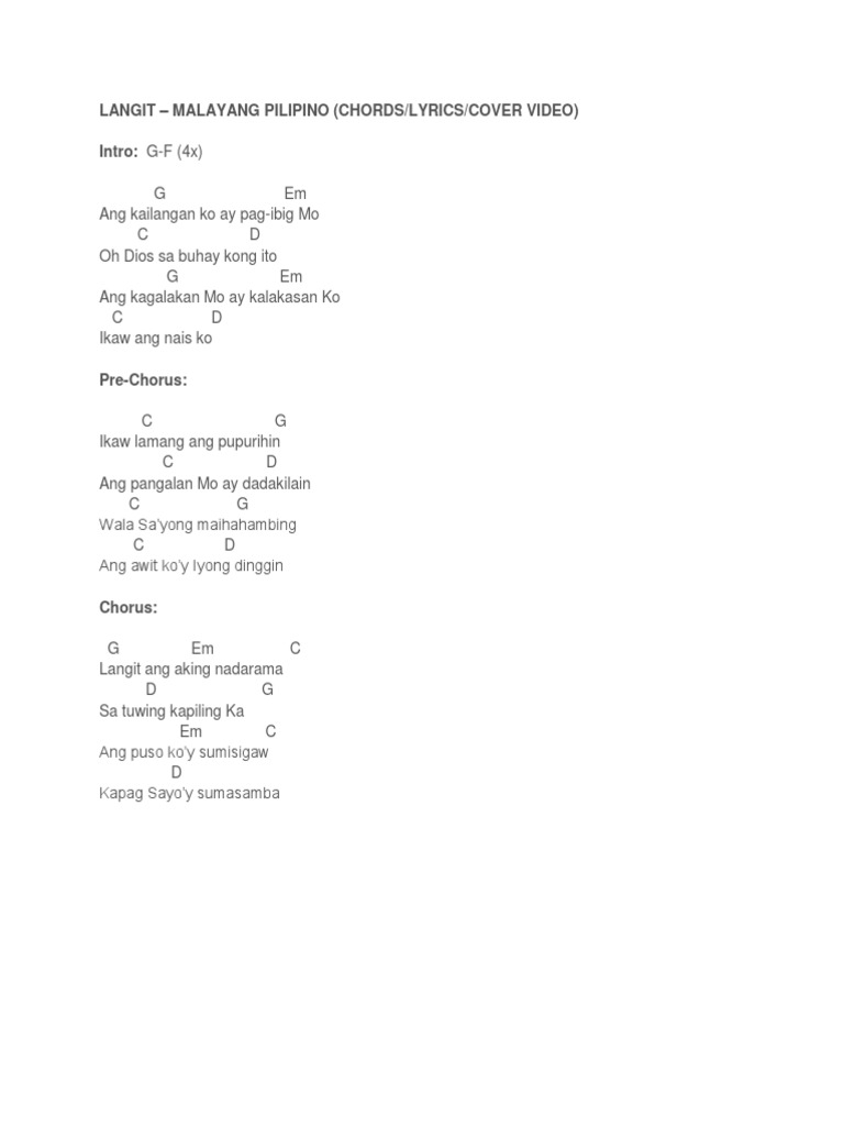 Mahal Kita O Aking Panginoon Chords lyrics. Home Music radio edit blog entry Mahal Kita Pero Di Mo Lang Alam Power Chords. D Em A G D G F G Matagal ko ng gustong sabihin to.